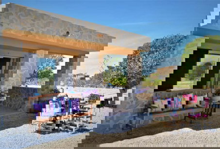 Justo en este enclave se encuentra nuestra preciosa finca Siamo Donatella. Gran casa de nueva construcción, creada en dos alturas para poder aprovechar la vista al mar, que se puede apreciar desde la segunda planta. Distribuida en 3 viviendas con entradas totalmente independientes y preciosas zonas de jardín, donde disfrutar de los desayunos cuando el sol aún no te obliga a refrescarte en el mar.
